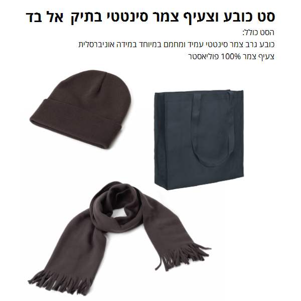סט כובע וצעיף צמר סינטטי בתיק אלבד כובע גרב עמיד מידה אוניברסלית