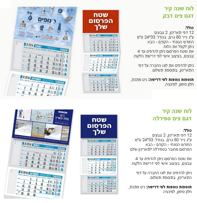 < לוחות שנה קיר+שולחן