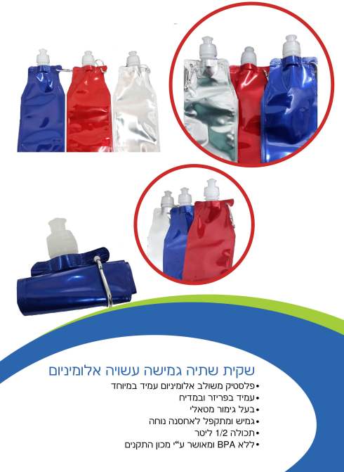 שקית שתיה גמישה עשויה אלומיניום מתאים לשתיה חמה וקרה